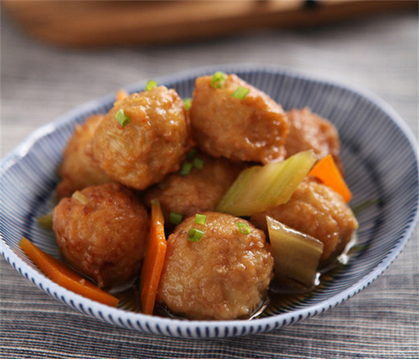 3、鍋中熱油,左手取適量藕糜,從虎口處擠出,右手