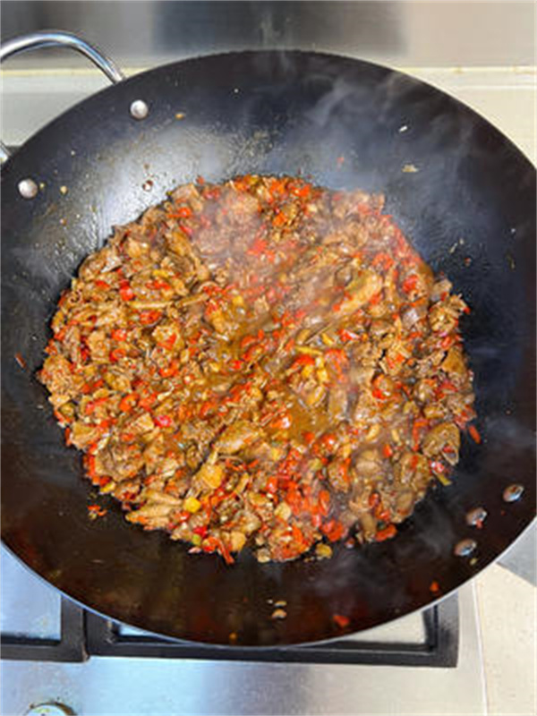 步驟1,食材準(zhǔn)備 鴨肉要盡量切小塊,鴨血放冬酒(也可用米酒代替)、少許鹽拌勻,準(zhǔn)備多多的辣椒、姜蒜切末步驟2,鍋熱下茶油,油熱倒入鴨肉慢慢煸炒干水分,至油變清澈,