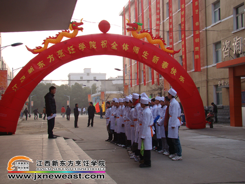 2011年2月8日,大年初六,江西新東方烹飪學(xué)院2011年新學(xué)年開學(xué)了!校園內(nèi)鞭炮轟鳴,禮花綻放,歡聲笑語,整個學(xué)校沉浸在歡樂的海洋中,激情、祝福、歡樂,在喜慶的氛圍中騰飛!
