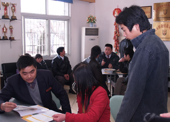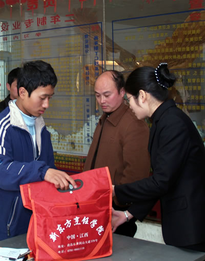 來自同一個(gè)地方的尹小麗、聶貴琴都是由父親陪同到校報(bào)到的,專業(yè)也是一樣:“技能+學(xué)籍”中專班。聶貴琴的父親激動(dòng)地告訴我們:“兩家是親戚,春節(jié)在家就商量好來江西新東方學(xué)習(xí)的。兩年制中專班,不僅讓孩子學(xué)到烹飪技術(shù),而且拿到學(xué)籍,一舉兩得,多好啊!碑(dāng)被問到為什么會(huì)替孩子選擇江西新東方烹飪學(xué)院時(shí),他笑嘻嘻回答:“我有一個(gè)侄子去年從江西新東方烹飪學(xué)院畢業(yè),學(xué)校安排去蘇州一家大酒店工作,月薪2000元,獎(jiǎng)金等其它每月又有2000元左右,家里人都很滿意。我們做父親的,想的很實(shí)際,只要孩子學(xué)完后,有個(gè)好的去處、好的工作,就滿足了!