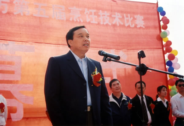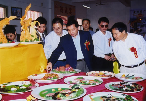 江西省烹飪協(xié)會會長錢汝興和江西省勞動和社會保障廳職業(yè)培訓(xùn)處處長張小崗為大賽剪彩