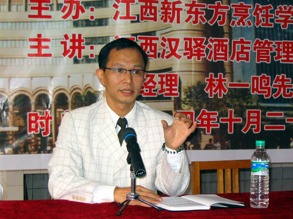 10月29日下午14:30分,江西新東方烹飪學(xué)院多功能廳里舉行了烹飪行業(yè)發(fā)展前景及餐飲業(yè)經(jīng)營管理知識講座。學(xué)院邀請的來自漢驛酒店管理公司的總經(jīng)理林一鳴先生給全校學(xué)生帶來了一場精彩演講!