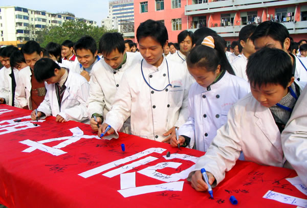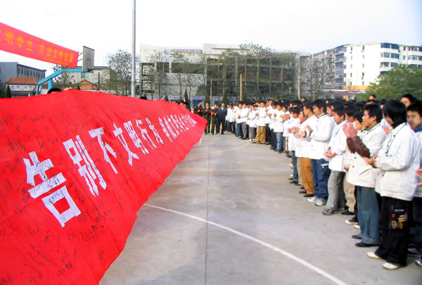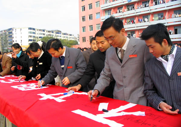 初冬季節(jié),陽(yáng)光明媚。為營(yíng)造文明馥郁的校園環(huán)境,塑造當(dāng)代學(xué)生的文明形象,11月30日上午,我院精心籌備的“告別不文明行為,爭(zhēng)做文明學(xué)生,共創(chuàng)文明校園”大型簽名活動(dòng)在校園隆重舉行,全校學(xué)生積極參與進(jìn)來(lái),同時(shí),活動(dòng)還吸引了一部分老師前來(lái)?yè)]筆“書(shū)”情。