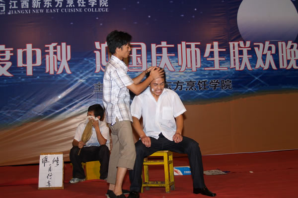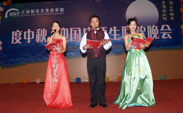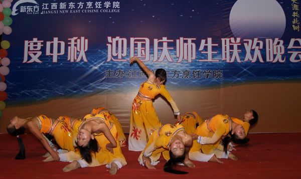 激情飛揚,青春舞動。為了迎接中秋佳節(jié)和國慶節(jié)的到來,9月15日晚,江西新東方烹飪學院校園內(nèi)氣氛熱烈,熱鬧非凡,一場以《迎中秋、慶國慶》為主題的大型師生聯(lián)歡晚會隆重開演,學院張建中院長、張明副院長、姚俊杰主任、胡孝中主任及全體老師也前來觀賞助興并給予了高度評價。
