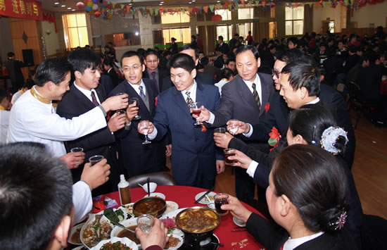 與會領(lǐng)導(dǎo)向全體員工舉杯祝福