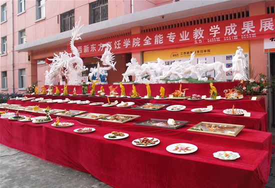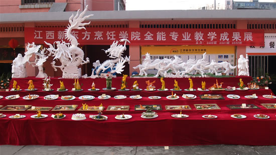 3月1日,江西新東方烹飪學(xué)院教學(xué)成果展隆重開幕,此次成果展共展出作品一百余道,包括雕刻、熱菜、拼盤和中西式面點(diǎn)等項(xiàng)目。