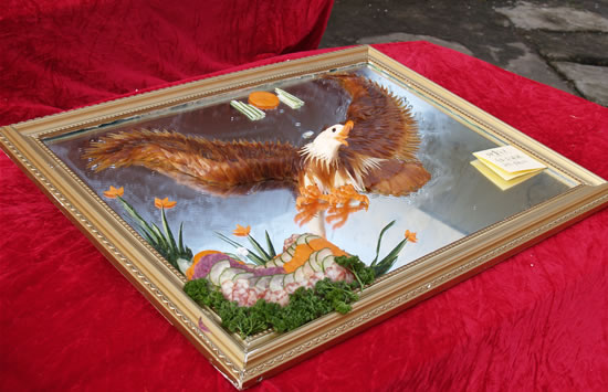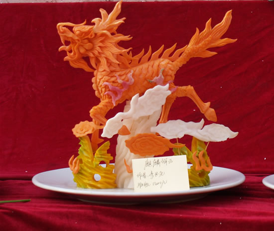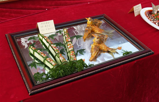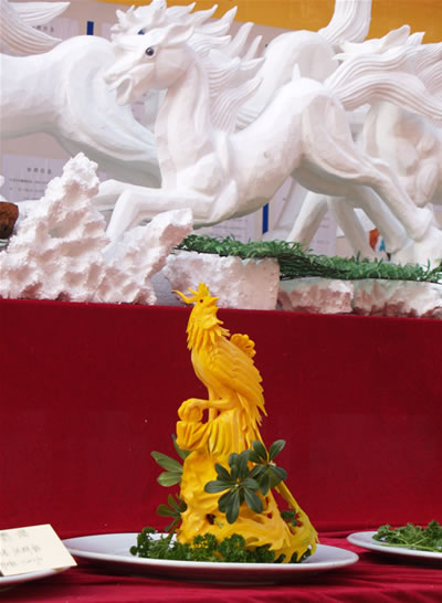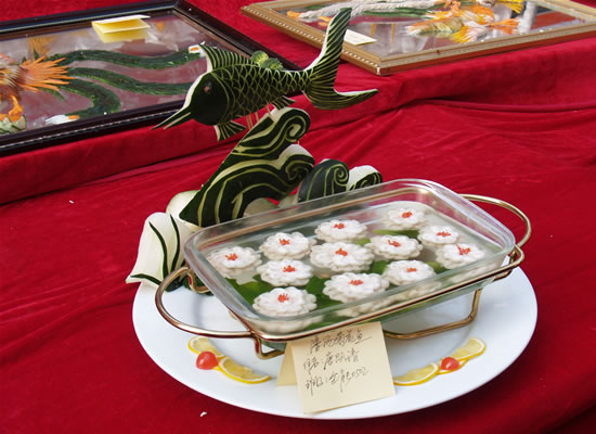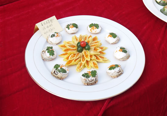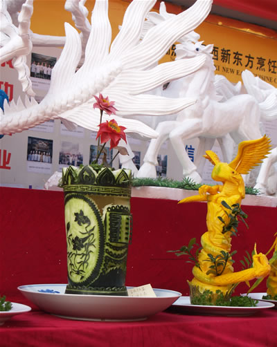一個(gè)個(gè)貌似平常的南瓜、蘿卜,在新東方師生們的手中轉(zhuǎn)眼便成了游龍飛鳳、花鳥蟲魚,栩栩如生。一道道精妙絕倫的美味佳肴,吸引了全校師生的眼球,許多來校參觀咨詢的新生及家長也被香味四溢的菜肴所吸引,前來參觀的人們絡(luò)繹不絕,驚嘆之聲不絕于耳。