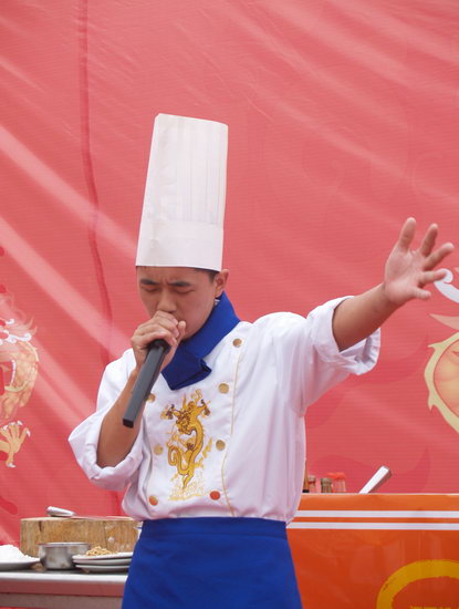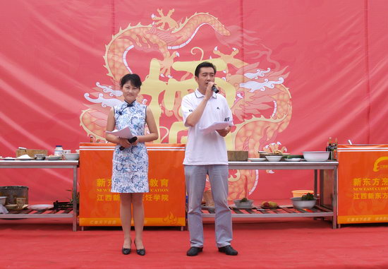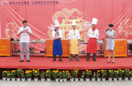 主持人宣布首屆“新東方”杯烹飪擂臺賽正式開幕