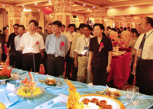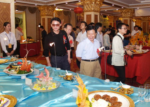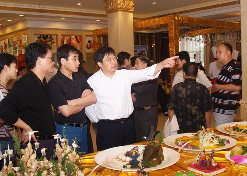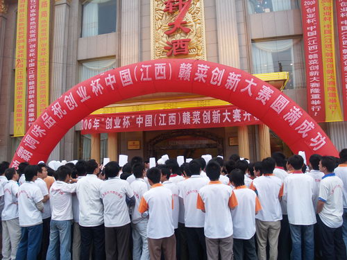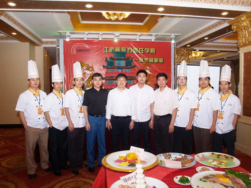 為弘揚創(chuàng)新贛菜美食文化,豐富江西美食文化寶庫,打造江西美食品牌,推動江西旅游餐飲業(yè)發(fā)展,適應(yīng)人們飲食消費的新觀念、新需求,正確引導(dǎo)江西烹飪創(chuàng)新發(fā)展的方向,真情創(chuàng)造"美味、健康的飲食生活"。由省內(nèi)貿(mào)辦、省勞動和社會保障廳、省總工會、省烹飪協(xié)會聯(lián)合舉辦的2006年"創(chuàng)業(yè)杯"職業(yè)技能競賽暨中國(江西)贛菜創(chuàng)新大賽于2006年6月6號在昌順利開幕。省政協(xié)金異副主席、省人大蔣仲平副主任、省烹飪協(xié)會錢汝興會長等省市領(lǐng)導(dǎo)及其一行應(yīng)邀參加了開幕式。我院張明副院長也應(yīng)邀出席開幕式并剪彩。