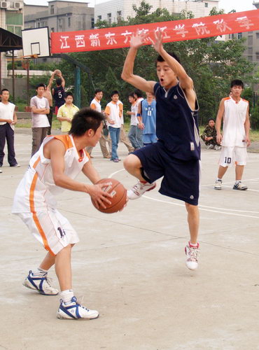 為豐富校園文化生活、發(fā)揚拼搏精神,提高學(xué)子的綜合素質(zhì),加強學(xué)院精神文明建設(shè),我院于9月7日下午隆重舉行“江西新東方烹飪學(xué)院06年秋季校園籃球聯(lián)賽”。開幕式現(xiàn)場舉行了隆重的入場儀式,學(xué)院領(lǐng)導(dǎo)出席開幕式并發(fā)表講話,裁判員代表及運動員代表分別進(jìn)行了莊嚴(yán)宣誓,場面異常壯觀。隨后,教師隊和06年春季籃球聯(lián)賽衛(wèi)冕隊進(jìn)行大賽前奏友誼賽,頂著烈日驕陽,隊員們以精彩紛呈的鏡頭吸引了眾多觀戰(zhàn)者到場,現(xiàn)場歡呼雀躍,比賽精彩激烈。