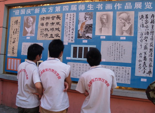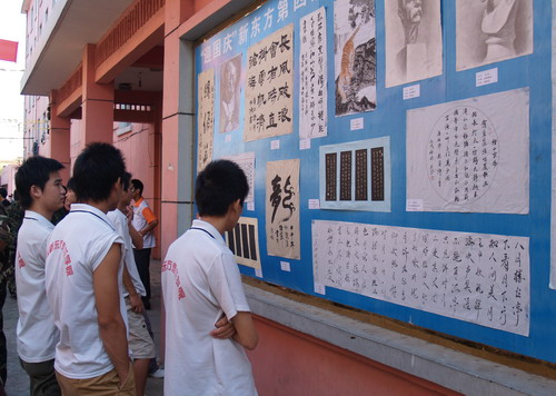 為了熱情謳歌中華人民共和國成立五十七周年的光輝歷程,繼承和發(fā)揚中華民族傳統(tǒng)書法和繪畫藝術,為國慶節(jié)營造熱烈、祥和的節(jié)日氛圍,9月22日,由學院就業(yè)指導中心和學工處聯(lián)合主辦的“迎國慶”新東方第四屆師生書畫作品展覽在江西新東方烹飪學院文化長廊順利展出。