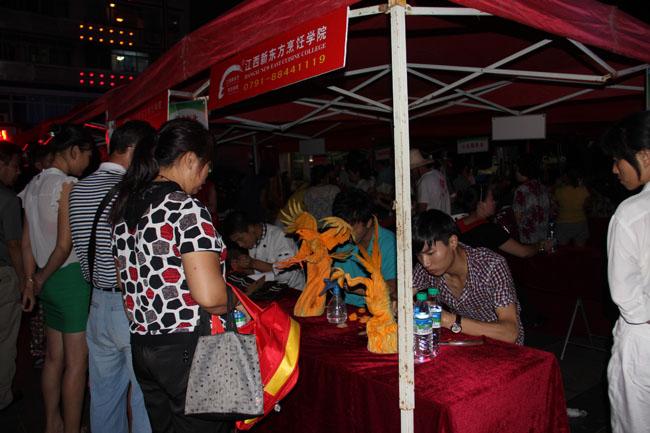 9月13日晚7點,由南昌市勞動保障局主辦,西湖區(qū)勞動就業(yè)服務保障局承辦的專場招聘會在西湖區(qū)象山文化廣場舉行。江西新東方烹飪學院教師、雕刻大師徐志清受邀參加表演。