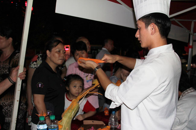 江西新東方烹飪學院學子現(xiàn)場雕刻表演引群眾圍觀