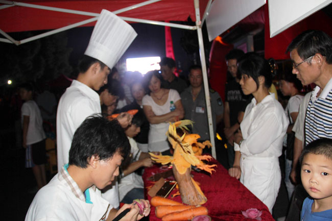 江西新東方烹飪學院現(xiàn)場雕刻表演引圍觀