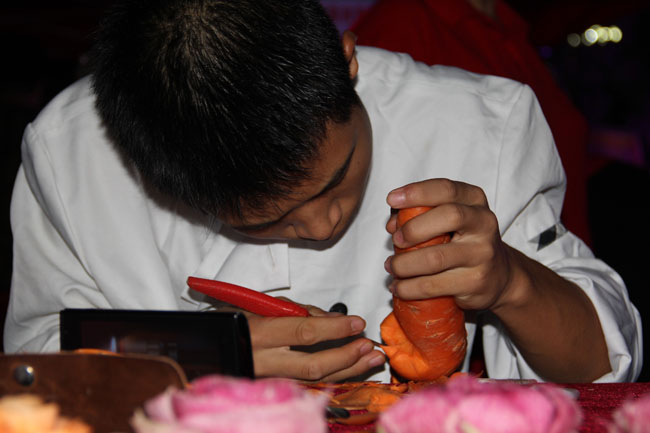 江西新東方烹飪學院學子現(xiàn)場雕刻表演