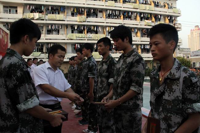學(xué)區(qū)王主任作了軍訓(xùn)總結(jié)講話,充分肯定了這次軍訓(xùn)的成果及匯報表演取得的成功。并為本次軍訓(xùn)優(yōu)良標兵頒發(fā)了榮譽證書。較后,本次大會在雄壯的中國人民解放軍軍歌聲中圓滿結(jié)束,為期8天的軍訓(xùn)生活也就此落下了帷幕。