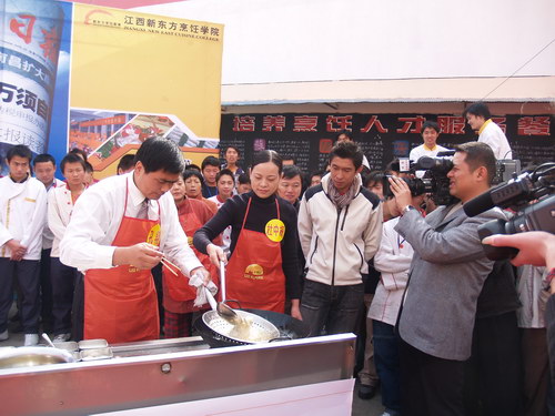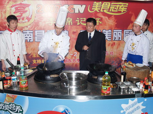 中央電視臺經(jīng)濟(jì)頻道《美味中國》欄目打造的美食品牌節(jié)目--《2007美味中國烹飪大賽》暨第五屆全國電視烹飪大賽于2006年10月正式啟動!大賽在全國共分16個賽區(qū),大賽南昌賽區(qū)選秀活動于11月20日拉開帷幕。主辦方經(jīng)過大量前期市場調(diào)查,多方比較,精心挑選,較后將比賽的錄制現(xiàn)場選定在江西新東方烹飪學(xué)院!自11月25日起,各地選手匯集在在新東方烹飪學(xué)院的現(xiàn)代化實踐操作演示廳里,經(jīng)過初賽和復(fù)賽的激烈角逐,產(chǎn)生了專業(yè)組4人、家庭組6人入圍總決賽!
