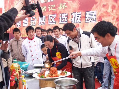 這次比賽選舉了一名專業(yè)選手和一組家庭選手,代表南昌市到北京參加“2007美味中國烹飪大賽”!我們由衷的希望通過這次大賽找出較能代表南昌菜式特色的廚師,站在中央電視臺與其余15個城市代表角力!