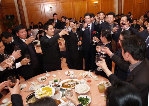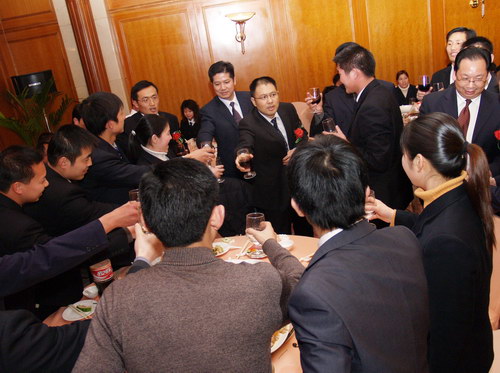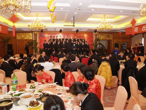 大會結(jié)束后,舉行了江西新東方烹飪學(xué)院2006年年宴,與會領(lǐng)導(dǎo)與江西新東方烹飪學(xué)院全體教職員工歡聚一堂,載歌載舞,舉杯暢飲。