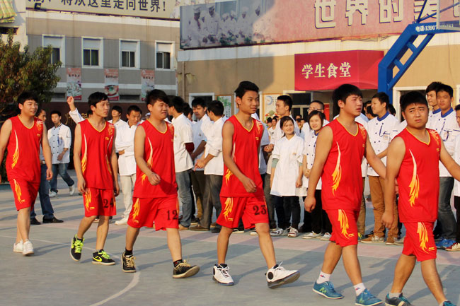 我校學(xué)子昂首闊步意氣風(fēng)發(fā)準(zhǔn)備進(jìn)行籃球比賽