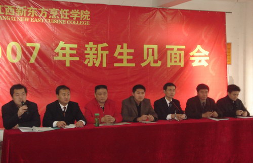 2007年3月23日上午,江西新東方烹飪學院舉行了2007年春季新生見面會。學院教務主任胡應東、教學點主任胡孝忠,就業(yè)指導中心主任徐利鴻等領導及數(shù)百名新生均參加了本次會議,會議由學工處王福軍主管主持。