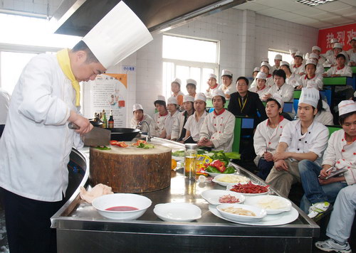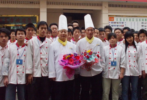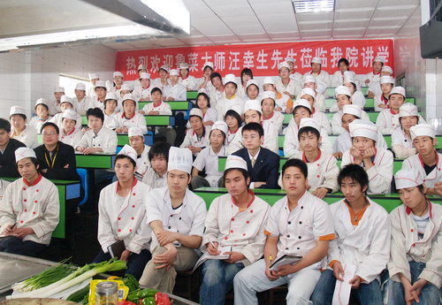 兩位重量級大師在我院共待兩天,講學的內(nèi)容為理論講學和實踐操作兩大部分,實踐課上將傳授數(shù)十種菜肴烹飪技巧,從選料技巧、火候掌控、刀技、調(diào)料配放、無不精細入微、通俗易懂,學子們聽得如醉如癡:理論課上兩位大師分別就如何搞好廚房管理和如何做好現(xiàn)代大廚兩大熱門學問作現(xiàn)身說法,并特別指出“溝通是管理工作中的重中之重、掌握每個同事的個性特征、培養(yǎng)團隊精神”等將自已積累的畢生經(jīng)驗傾囊相授。這的確是同學們一頓豐盛學習大餐,是同學們又一次與烹飪大師接觸,是心靈與烹飪文化的激烈碰撞。