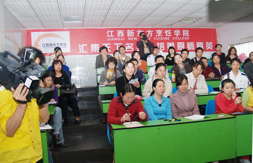 4月21日上午,以“弘揚(yáng)美食文化、推廣科學(xué)飲食”為主題;幫助下崗工人再就業(yè)、創(chuàng)建和諧家庭為主旨的周末免費(fèi)學(xué)廚藝活動(dòng)在風(fēng)景秀麗的江西新東方烹飪學(xué)院內(nèi)舉行開班議式。這種大型的,免費(fèi)的、面向全社會(huì)的學(xué)廚藝活動(dòng)在江西省內(nèi)是首次舉行。