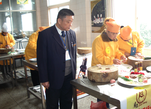 據(jù)現(xiàn)場市烹?yún)f(xié)領(lǐng)導(dǎo)介紹:在此參賽的28名選手是在各區(qū)半決賽中獲得首要名、第二名、第三名優(yōu)勝獎菜的得主,雖然選手們不是專業(yè)人員,但烹飪功底也深厚了得:總決賽時間共為兩天,每個選手要分別要進行拼盤和現(xiàn)場烹制四菜一湯并要求現(xiàn)場切配,時間限制很緊,評分的標(biāo)準是對選手們所烹制的菜“色、味、形、質(zhì)感和衛(wèi)生”和拼盤的創(chuàng)意等進行點評,整場比賽嚴格秉承公平、公正、公開的原則進行。