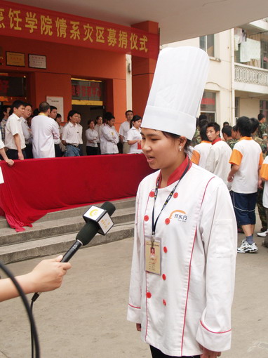 本網(wǎng)訊:(記者廖烈焰報(bào)道):天崩地裂的災(zāi)難牽動(dòng)每一個(gè)同胞的心,在得知四川省汶川縣發(fā)生突發(fā)地震災(zāi)難時(shí),國內(nèi)知名的江西新東方烹飪學(xué)院師生們在首要時(shí)間里,引起了巨大的反響。當(dāng)大家看到災(zāi)區(qū)的圖片,得到受災(zāi)的信息時(shí),不少人紛紛流下悲痛的眼淚。學(xué)生們紛紛表示要為國家、為受災(zāi)難的兄弟姐妹們盡一份綿薄之力,要用實(shí)際行動(dòng)為災(zāi)區(qū)的同胞們送上一份愛心。