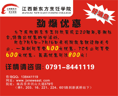 贛ICP備11001980號(hào)-1 版權(quán)所有:江西南昌新東方烹飪中專學(xué)校