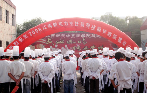 本網訊 技能大賽是考場,通過技能競賽可以檢查職業(yè)院校的教學是否體現了“以服務為宗旨,以就業(yè)為導向”的辦學宗旨,是否突出了職教特色,是否重視綜合能力特別是動手實踐能力的培養(yǎng)。近日,一年一度的江西新東方烹飪學院系列技能大賽在學院拉開了帷幕。此次大賽也是院領導提出的要把我院打造成“專業(yè)、文明、活力”校園的重要活動之一。10月10日上午,系列技能大賽開幕式正式開始,學院領導張勇、胡孝忠、胡應東、王福軍、吳賢正,老教授涂序鳳、武思濟等出席了開幕式并擔任大賽評委,新東方500余名學員參加了大賽開幕式。