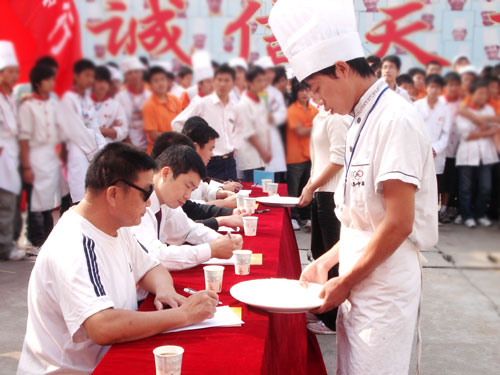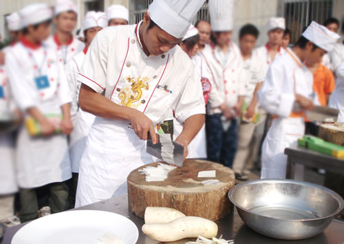 據大賽負責人胡應東主任介紹,此次系列大賽共分為刀工技能、食品雕刻技能、拼盤技能三個競賽模塊,在以后的幾天中將陸續(xù)展開。他表示,舉辦這樣的技能比賽是檢驗教師教學能力和激勵學生認真學習的一種手段,比賽的重點不在于勝負,而在于看重比賽過程,在于讓學生和教師在準備和投入之中更快成長,樹立“比技能、促質量、謀發(fā)展”的學習意識,樹立“以賽促教、以賽促學、以賽促改”的教學活動觀。這也是我院辦學20年來能一直處于烹飪教育領先地位的重要保證。