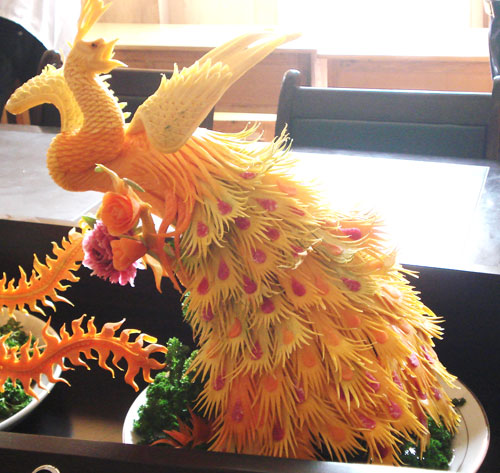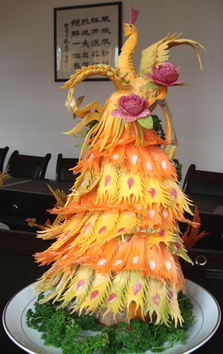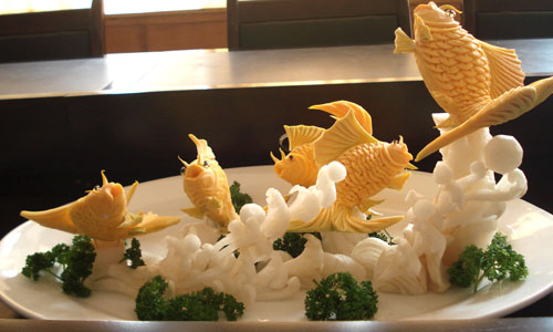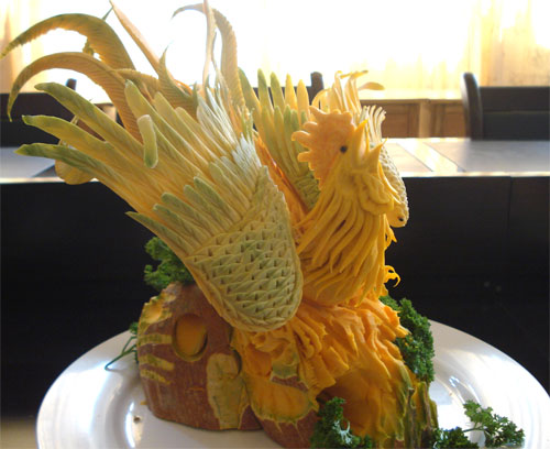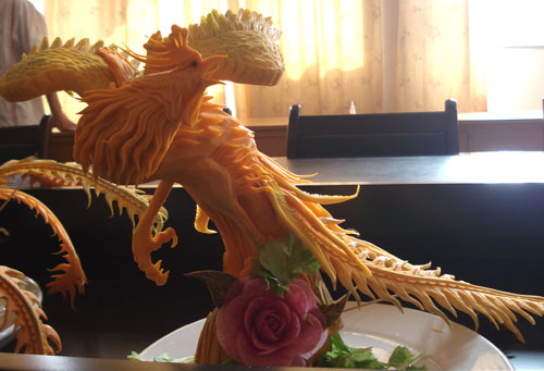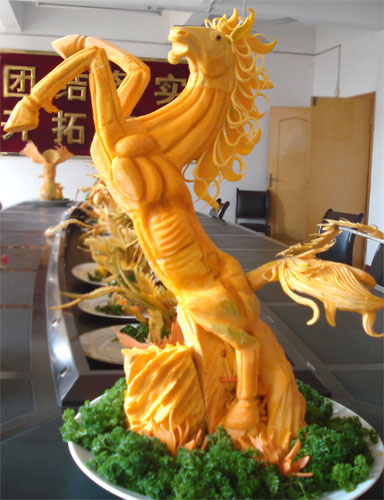 本網(wǎng)訊 江西新東方烹飪學(xué)院2008年系列技能大賽之二——雕刻比賽,10月21日上午在學(xué)院操場上舉行。由龍鳳呈祥、牡丹爭艷、金雞報(bào)曉、駿馬奔馳等圖案組成的一個(gè)個(gè)栩栩如生、美輪美奐的雕刻作品,讓眾多觀賞的新生贊嘆不已。也讓參加雕刻比賽的學(xué)員們切磋了技藝。