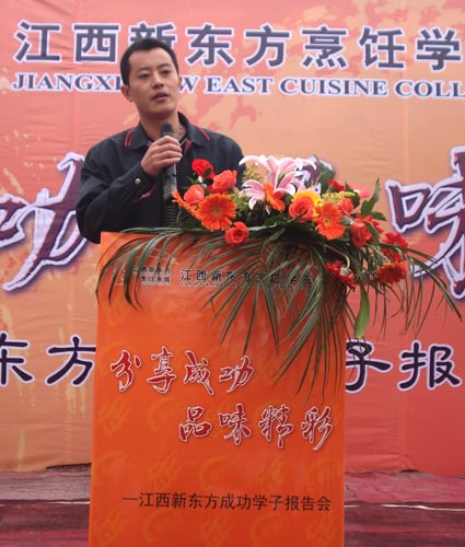 此次回母校參加報告會的新東方畢業(yè)學子代表,他們在酒店分別擔任了總經(jīng)理、餐飲部經(jīng)理、行政總廚等崗位且發(fā)揮著重要的作用,月薪是6000元到20000元不等,特別是學子李錦亮,由于他在酒店工作中干得相當出色,酒店老總還特意送給他一部本田小轎車作為獎勵。四位學子在報告會中分別做了精彩的報告,報告過程中高潮迭起,精彩不斷,引來師生們的陣陣掌聲。他們先后講述了自己的工作經(jīng)歷并同大家一起分享成長過程中的心得和收獲,并勉勵在校學子要勤奮刻苦,迎難而上,積極進取。通過專題報告會與現(xiàn)場互動,加強了學子之間的交流。使在校生明確學習目標,激發(fā)學習熱情,并借鑒學習方法和成功經(jīng)驗,把握學習機會,早日成才。江西衛(wèi)視和江西教育電視臺對此次報告會進行了采訪和報道。
