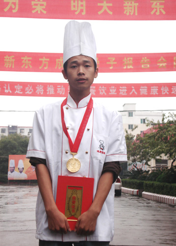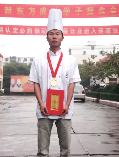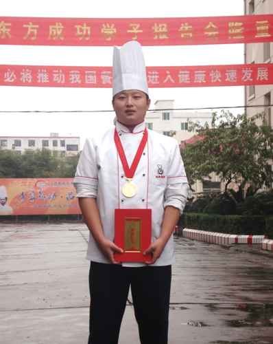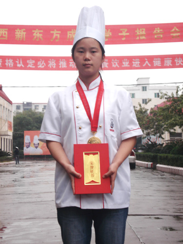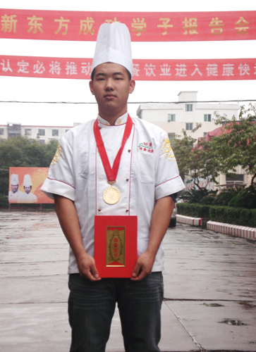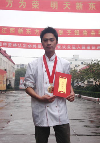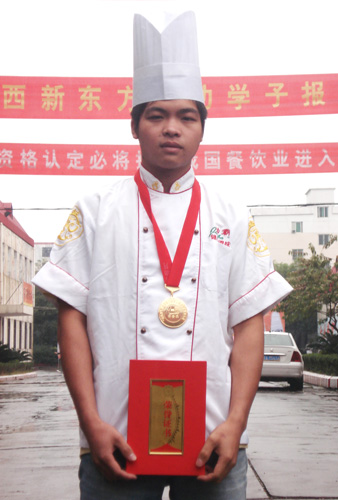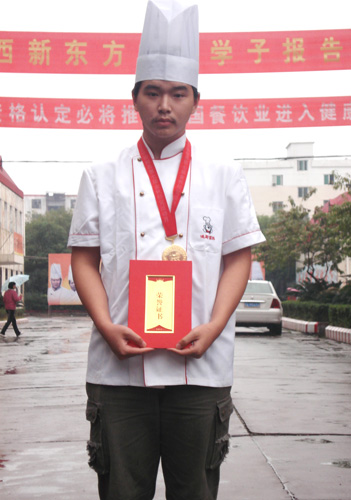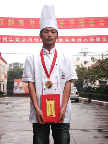 江西新東方烹飪學院派出大專班孫尚思、謝家財、金鵬飛等十位選手,烹制出“黃金鳥巢”、“水晶蝦”、“內(nèi)有乾坤”、“意猶未盡”等20道熱菜參賽。以外形逼真、色澤亮麗、味醇誘人、制作精細,受到了大賽評委們的一致好評及參觀市民的贊譽,十人參賽奪得十金,實現(xiàn)了滿堂紅,其中,六人是特金獎。