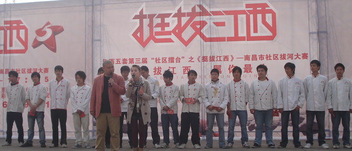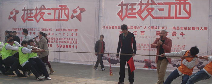 本網(wǎng)訊 12月20日 ,由中共南昌市委宣傳部、江西電視臺主辦,東湖區(qū)委宣傳部、西湖區(qū)委宣傳部、青云譜區(qū)宣傳部、、灣里區(qū)委宣傳部、青山湖區(qū)宣傳部、紅谷灘區(qū)委宣傳部協(xié)辦,江西電視臺 第三屆“社區(qū)擂臺”之《挺拔江西》——南昌市社區(qū)拔河大賽走進江西新東方烹飪學院,將我院選定為青云譜賽區(qū)的比賽場地和拍攝基地,我院派出兩支由學生組成的代表隊參加了青云譜社區(qū)選拔賽,我院的兩支學生代表隊分別被命名為“雄鷹隊”和“猛龍隊”。此次“挺拔江西,屬你較牛!”拔河大賽活動異常激烈,操場上擂鼓咚咚作響、吶喊聲震天!選手們的精彩表現(xiàn)贏得在場觀戰(zhàn)的人們陣陣掌聲!結果我院兩支學生代表隊在眾多高手中脫穎而出,雙雙奪魁!較激烈的比賽在我院兩支代表隊“雄鷹隊”和“猛龍隊”之間舉行,較終還是“猛龍隊”拔得頭籌,贏得青云譜賽區(qū),他們將代表青云譜區(qū)參加全市總的對決!