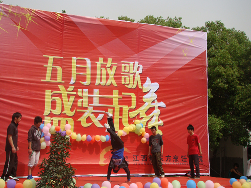 歡歌和笑語一起擁抱;青春和希望一起狂歡。4月29日下午,江西新東方烹飪學(xué)院“五月放歌 盛裝起舞 慶五一 迎五四”師生聯(lián)歡會在激情奔放的街舞《串燒》中拉開序幕,瞬間帶動了全場熱烈的氣氛。