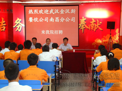 2010年9月7日全國知名餐飲連鎖管理有限公司“金漢斯”慕名來到江西新東方烹飪學(xué)院招聘人才。
